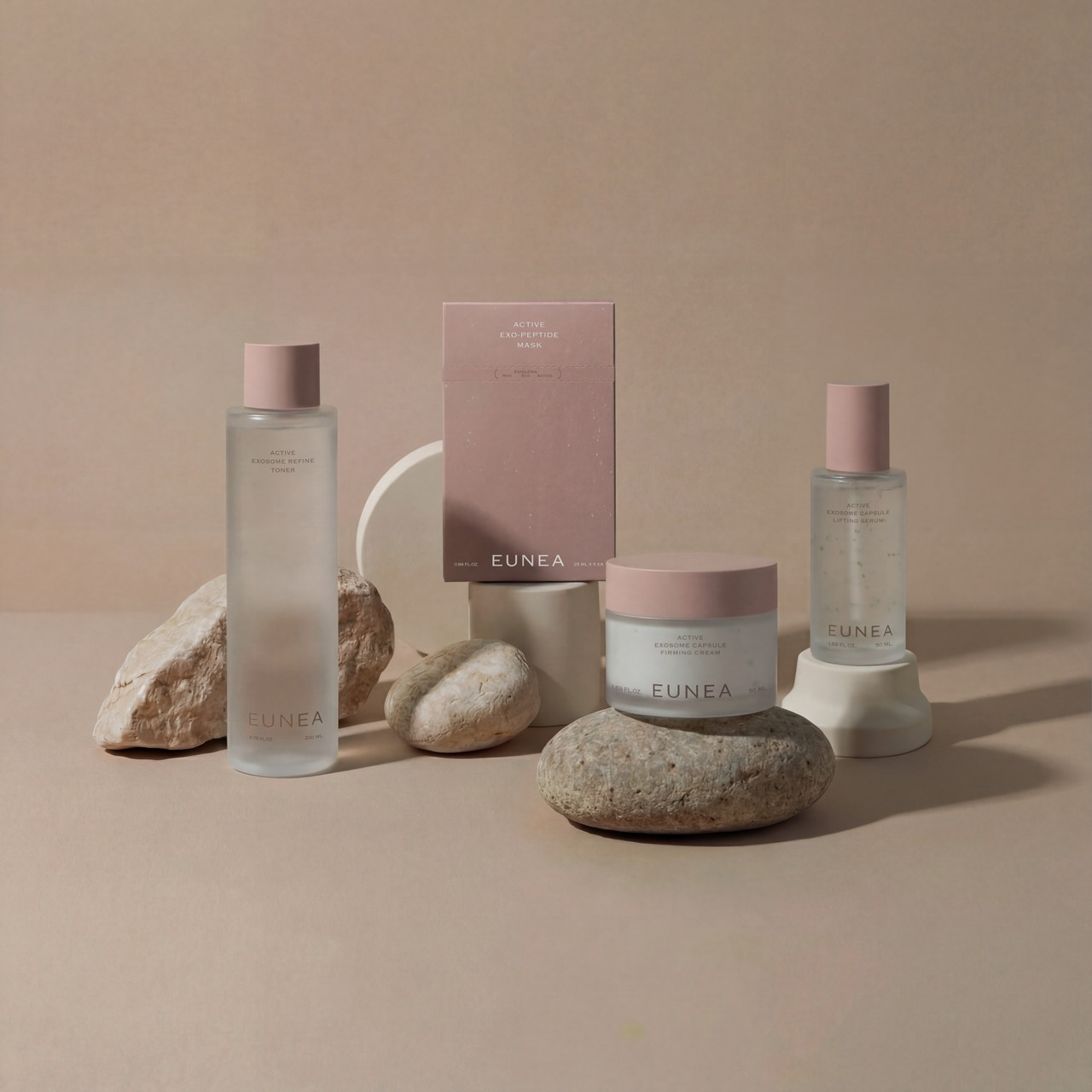 The EUNEA ACTIVE EXOSOME line is a slow-aging skincare collection formulated with Euglena-derived exosomes as its key ingredient.